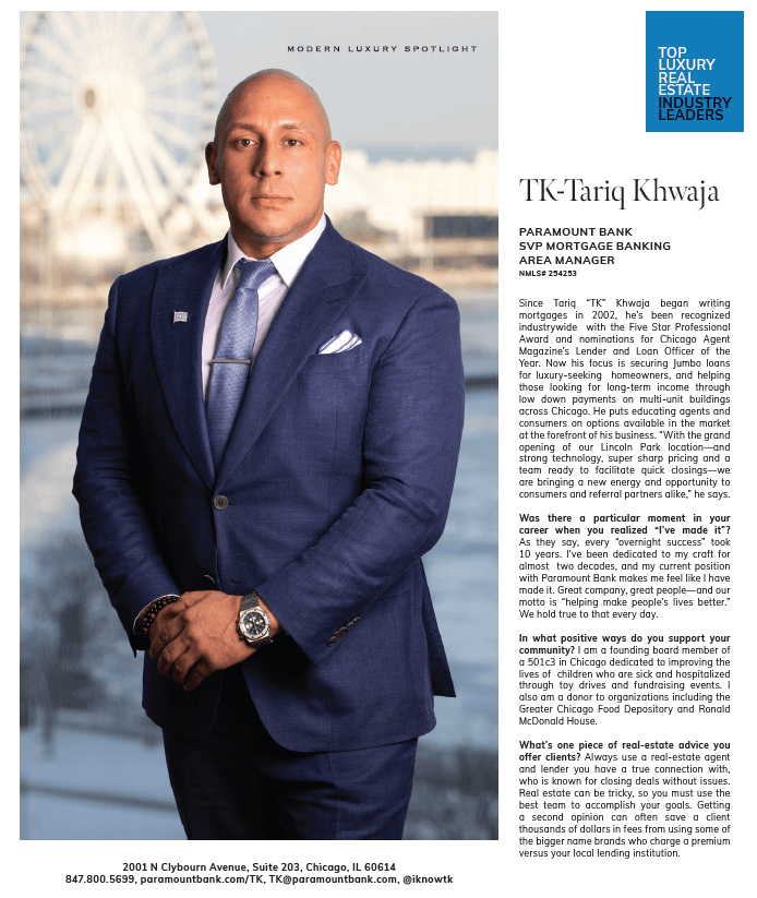 -TK has helped his team achieve "Lender of the Year" nominations in both 2014 and 2015 in Chicago Agent Magazine